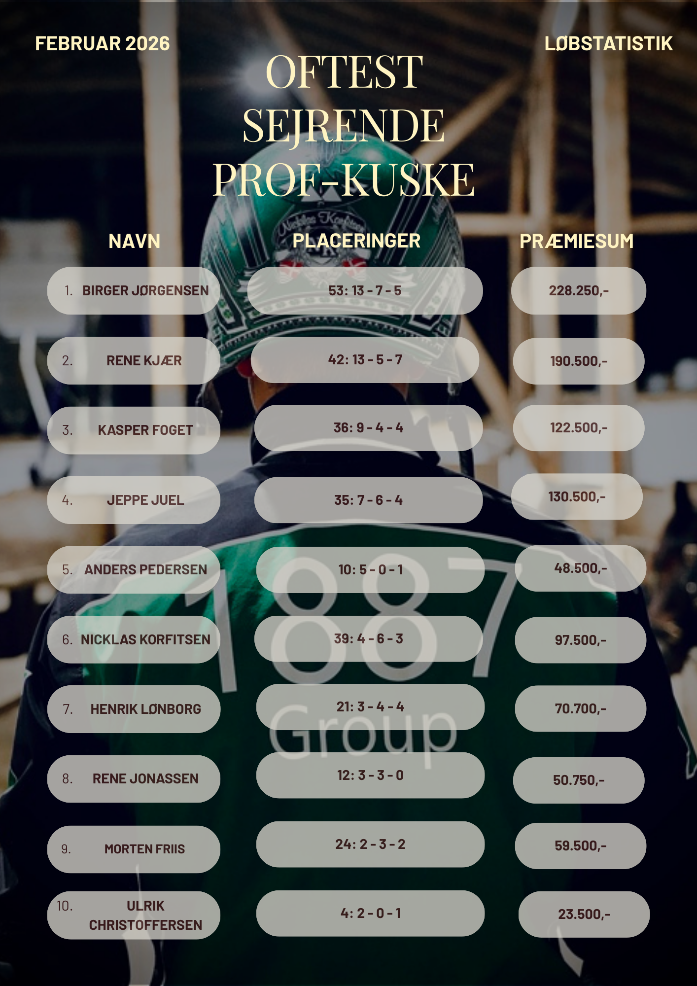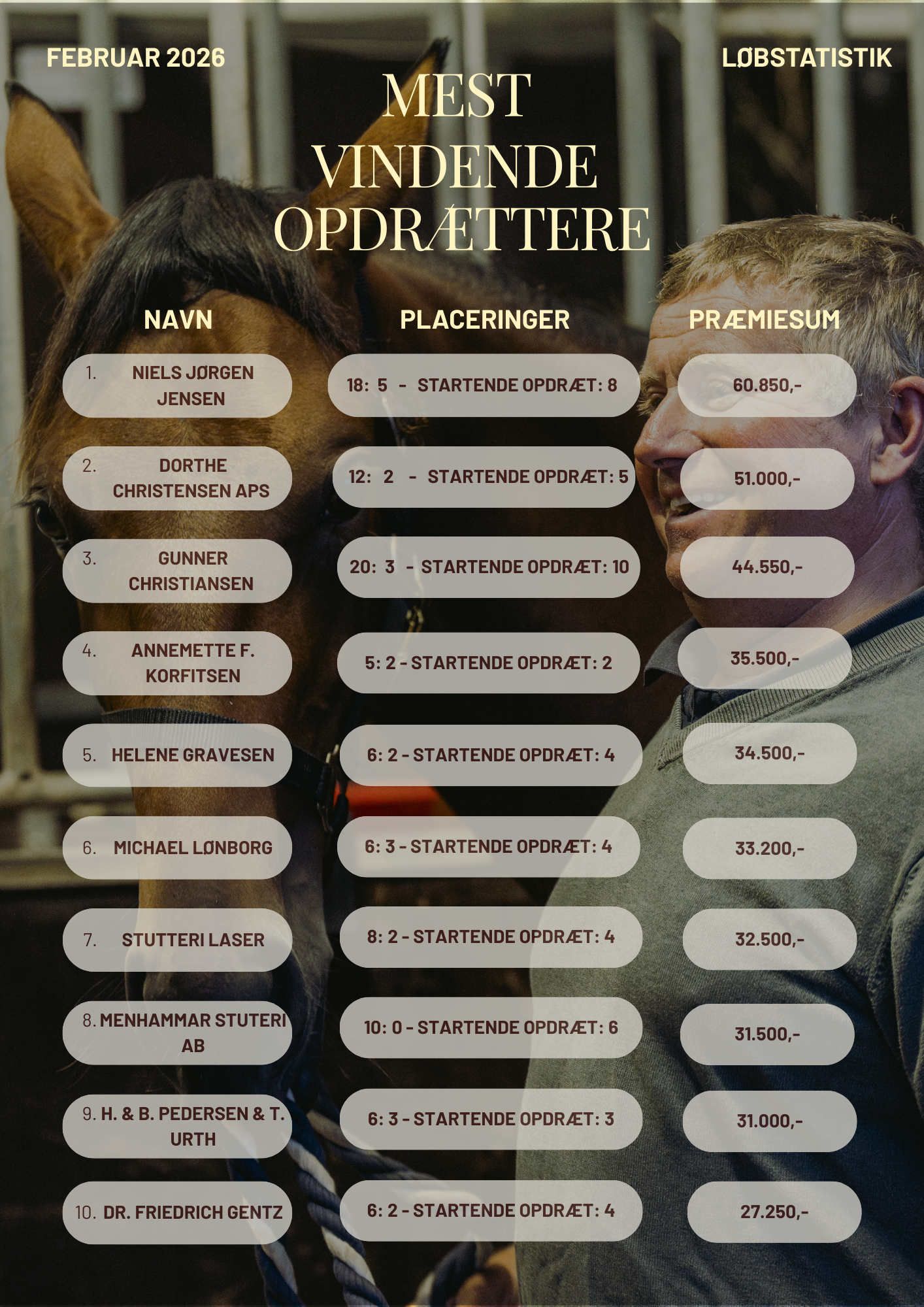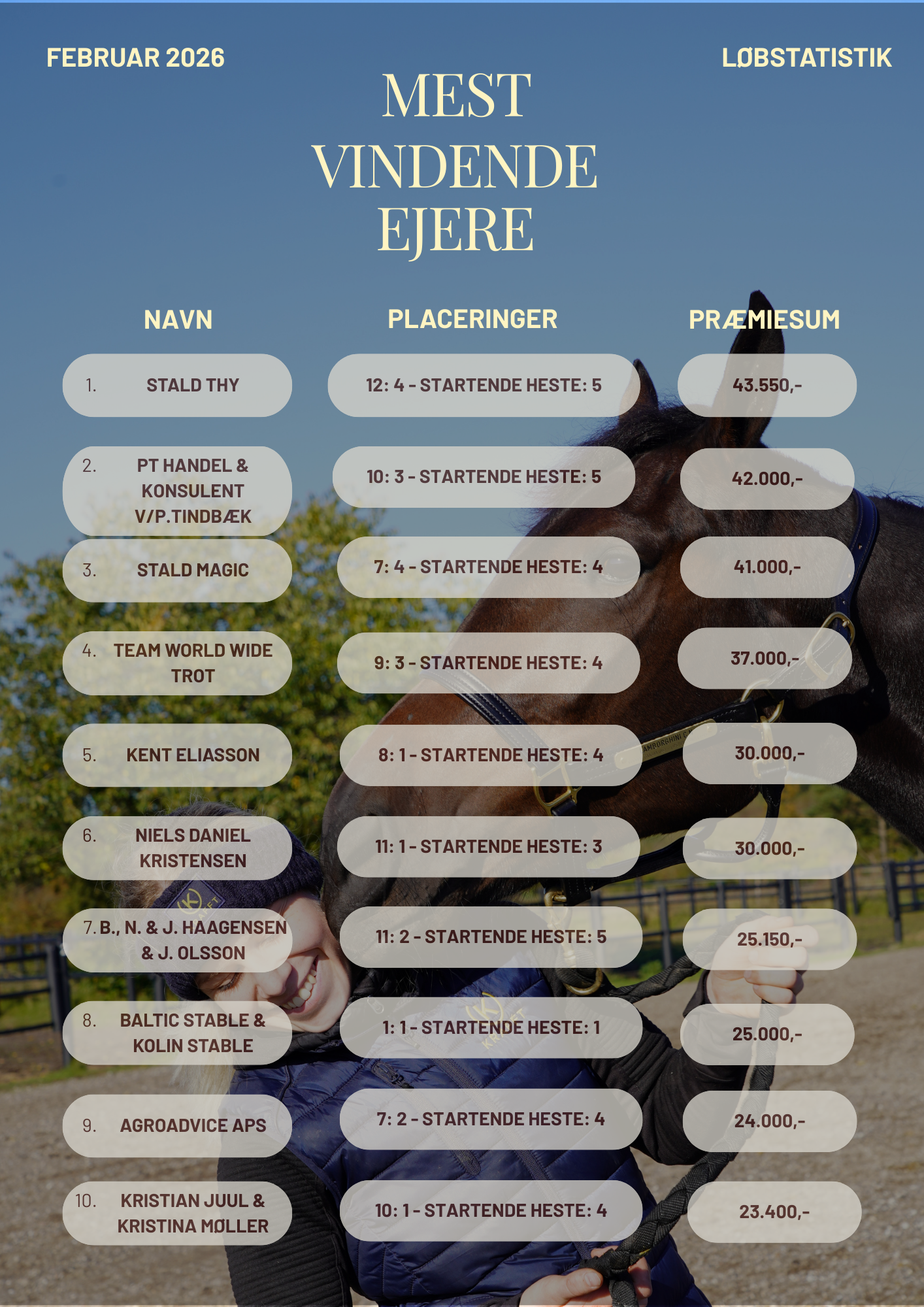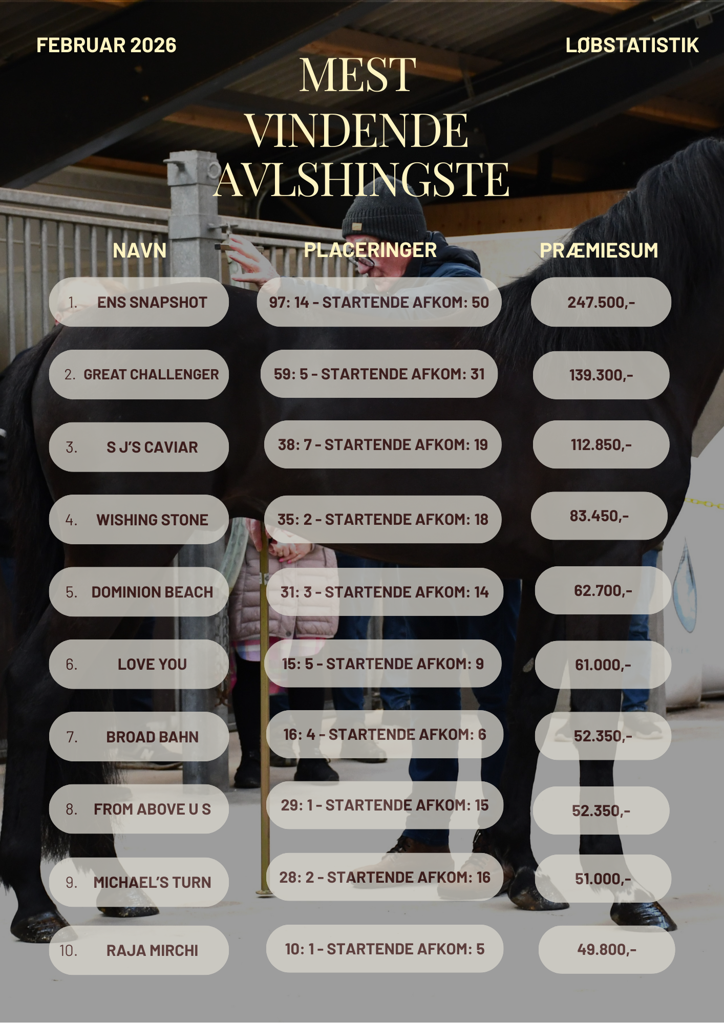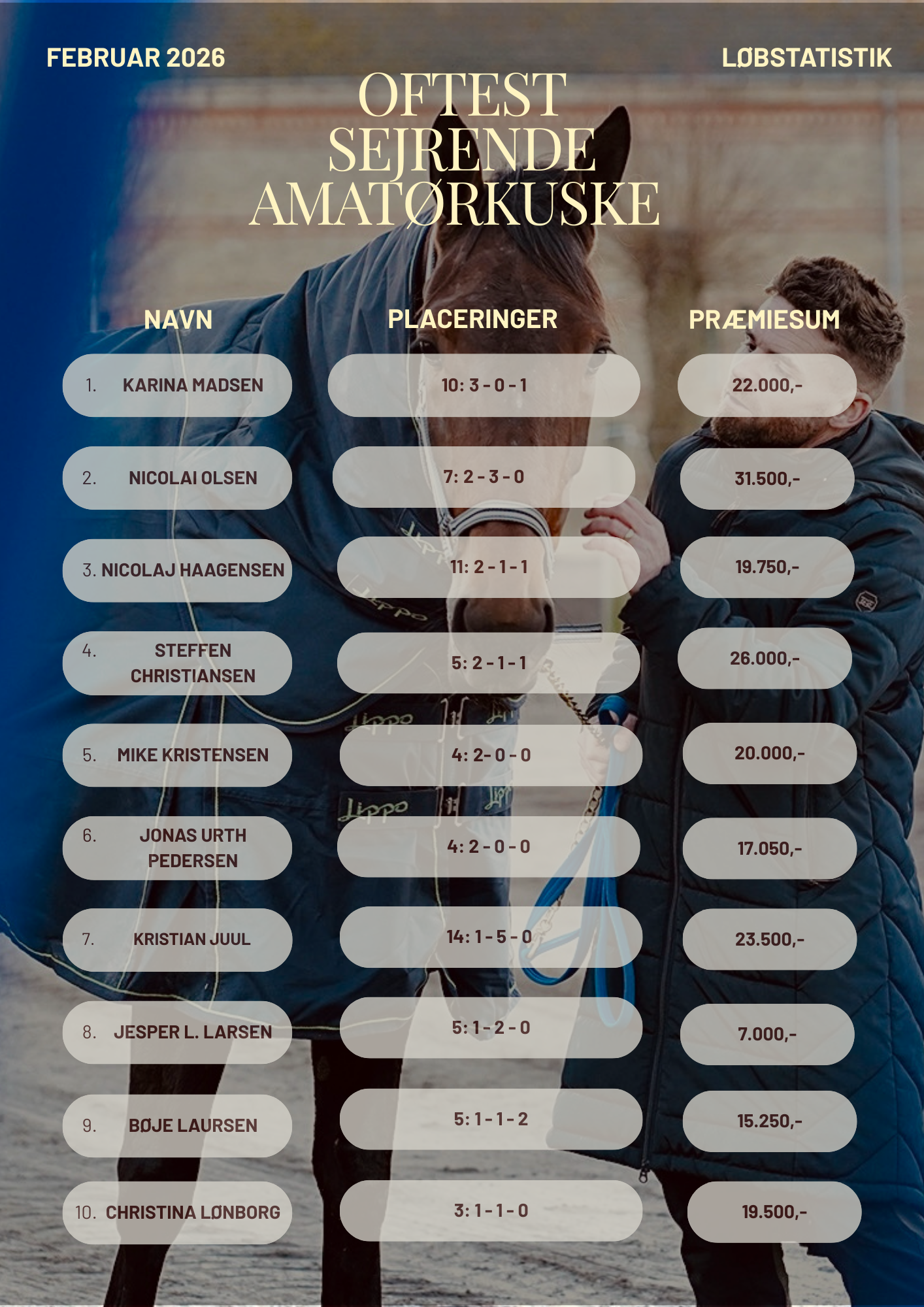 OBS: Galop og ungdomsstatistik vil indgå i oversigten når sæsonerne starter