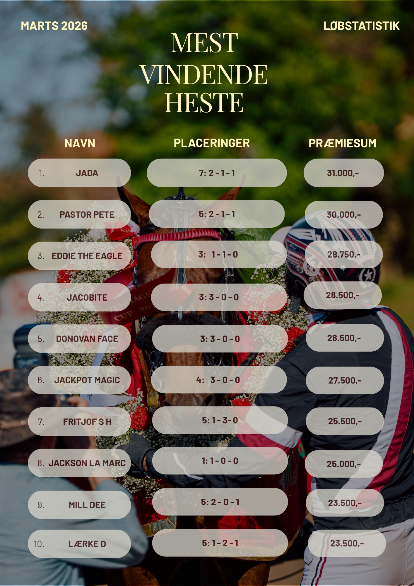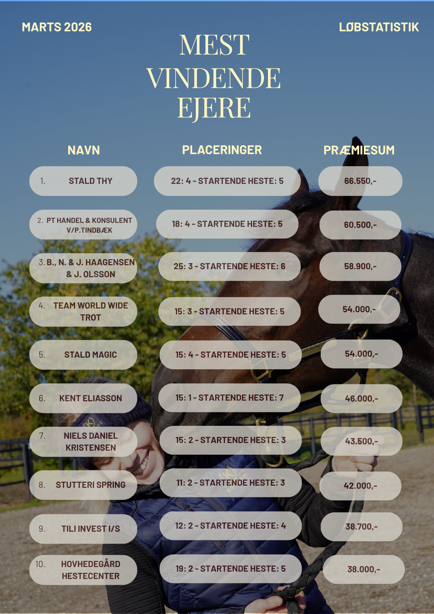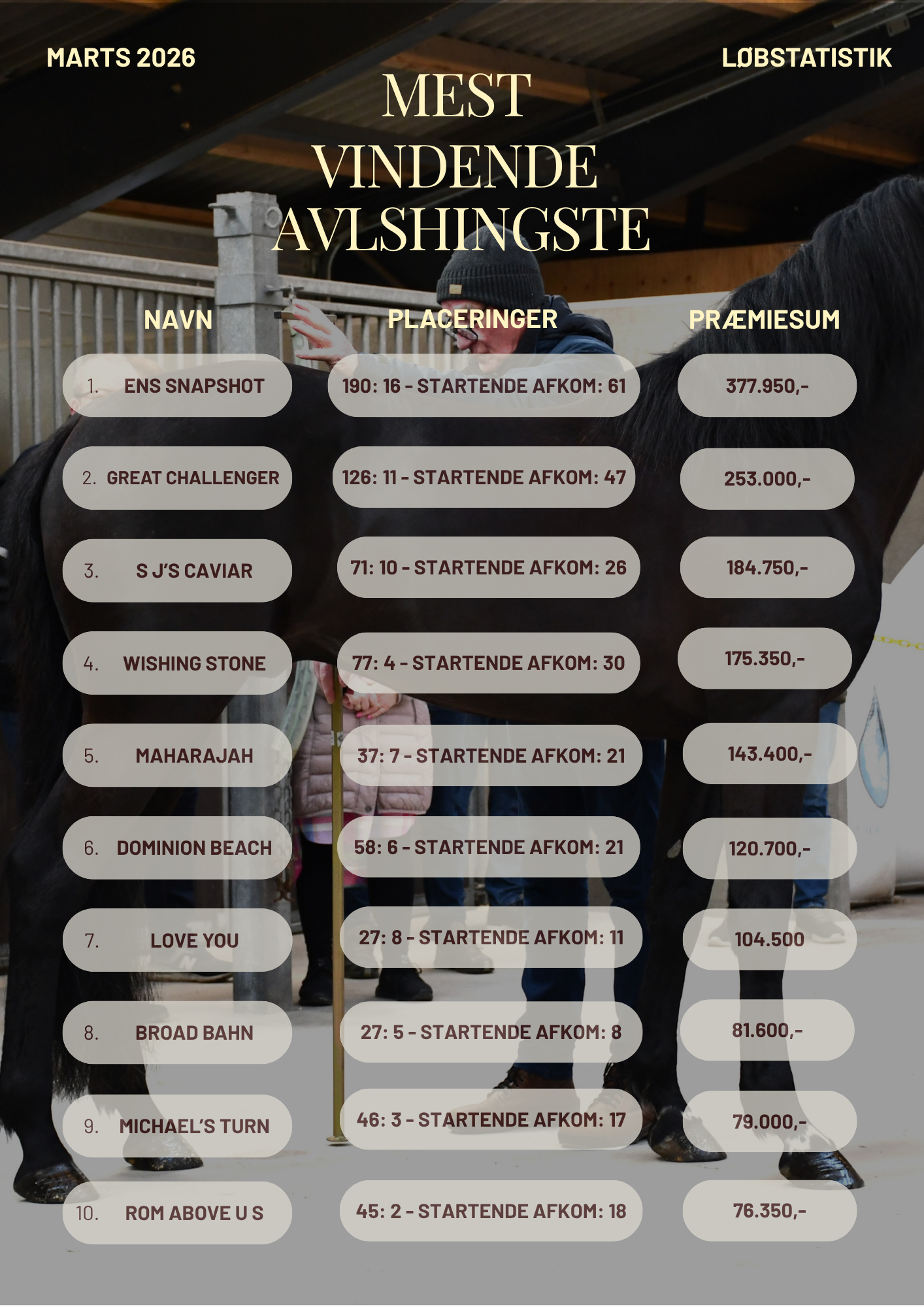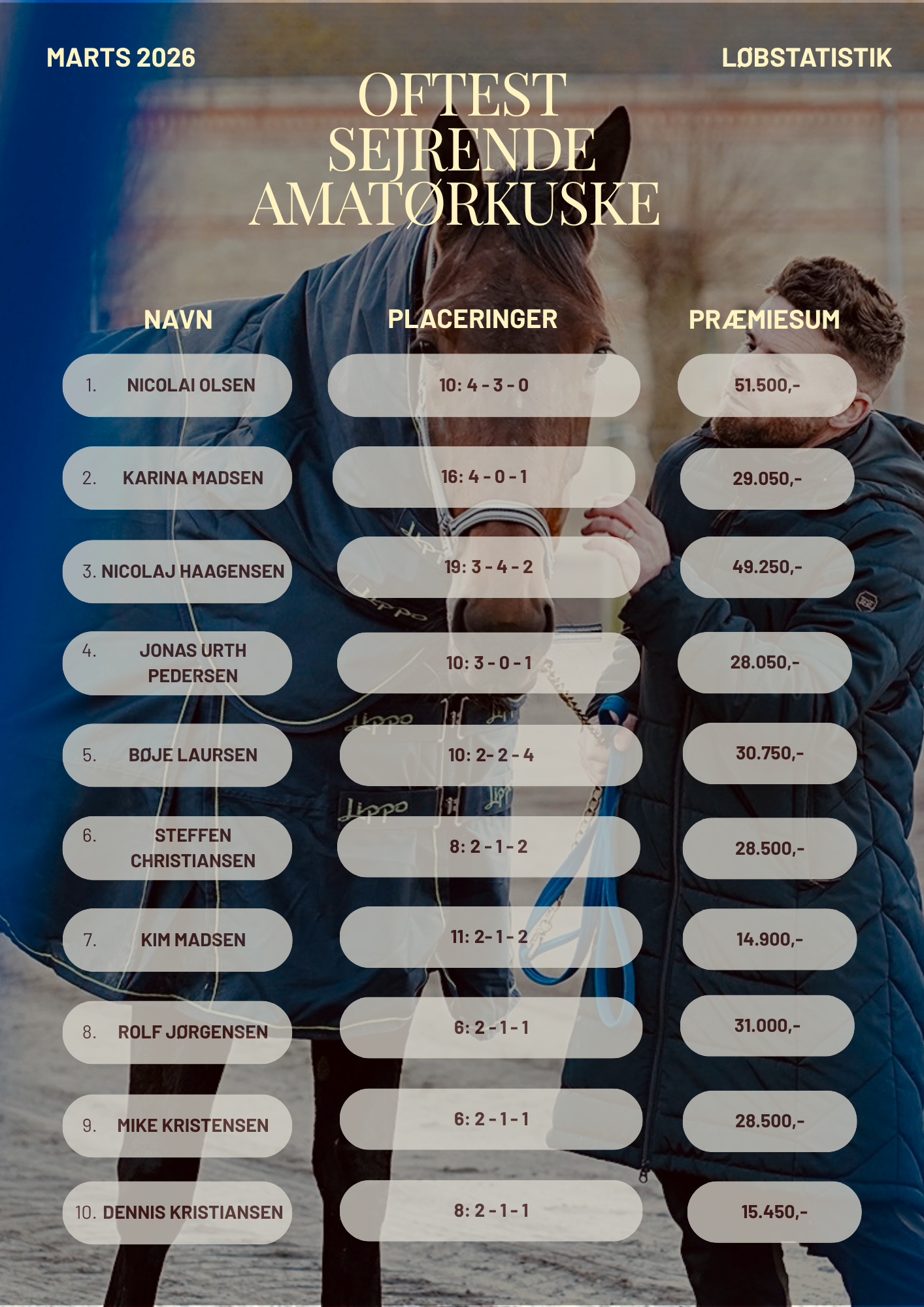 OBS: Galop vil indgå i oversigten når sæsonerne starter
